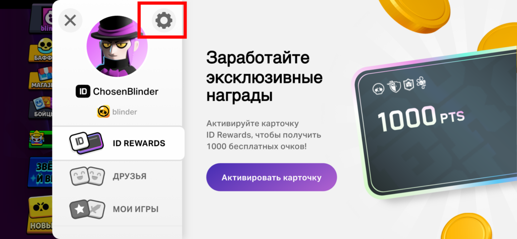 1. В игре откройте настройки профиля справа вверху.