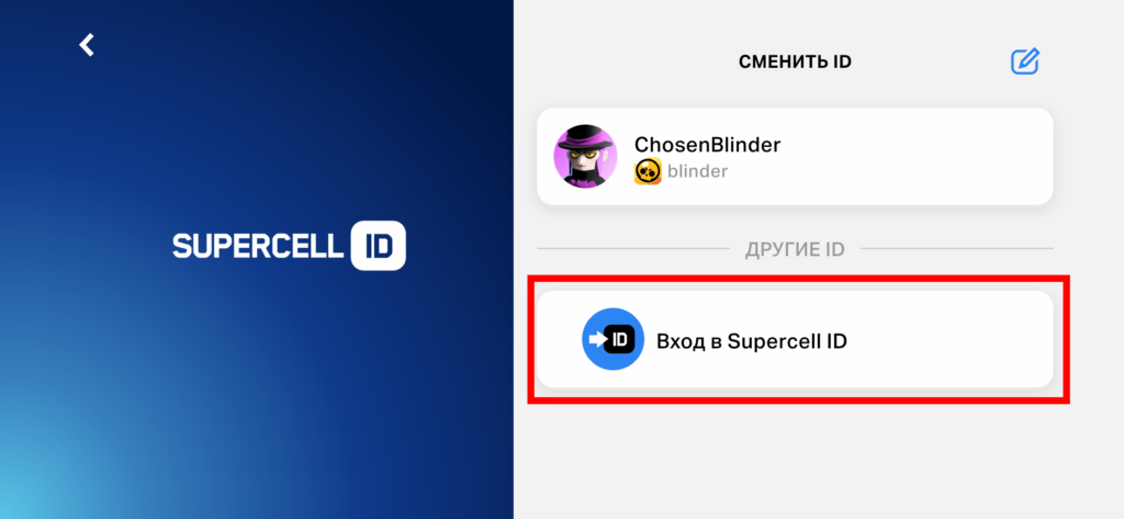 5. Нажимаем “Вход в Supercell ID”