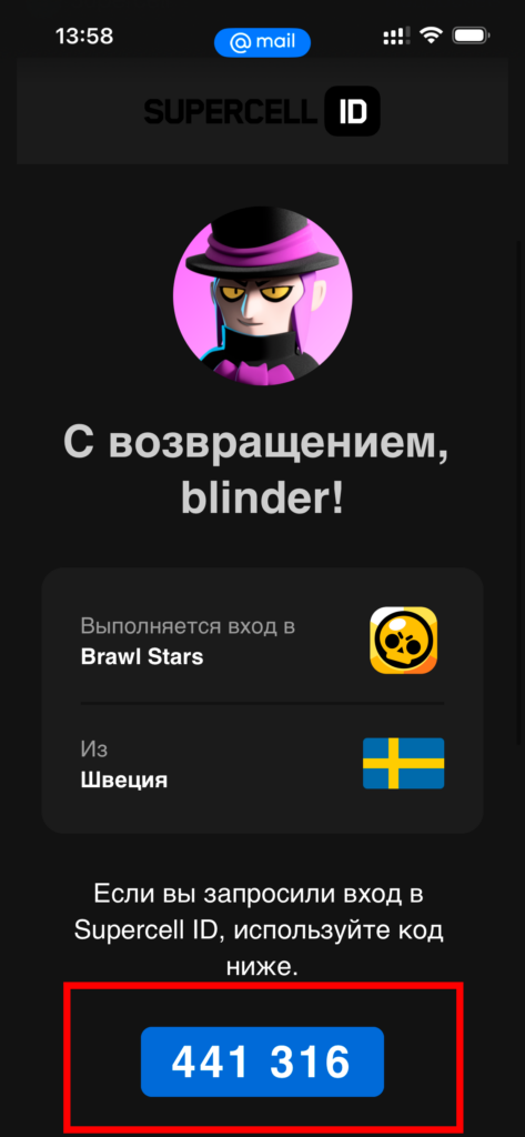 Откройте вашу почту. Увидите сообщение от Supercell. Внутри и есть ваш одноразовый OTP код.