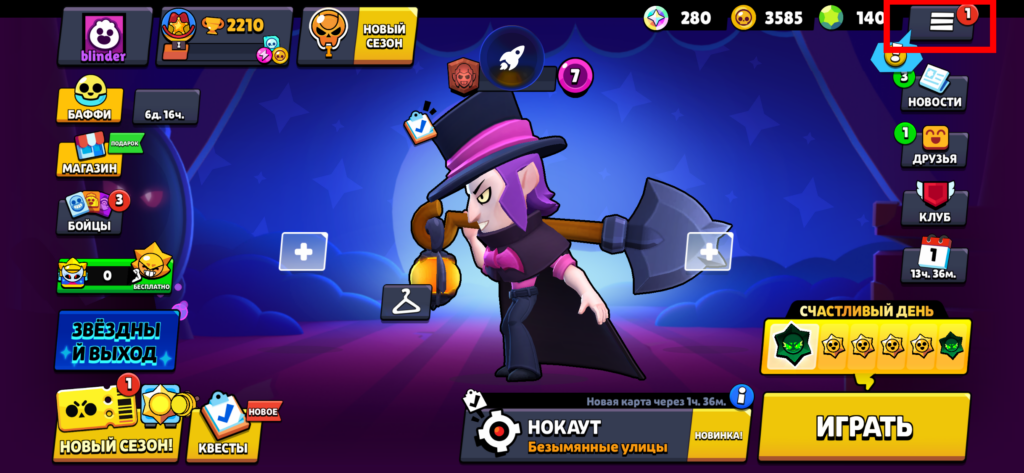 1) Заходим в игру, нажимаем кнопку меню (три полоски)